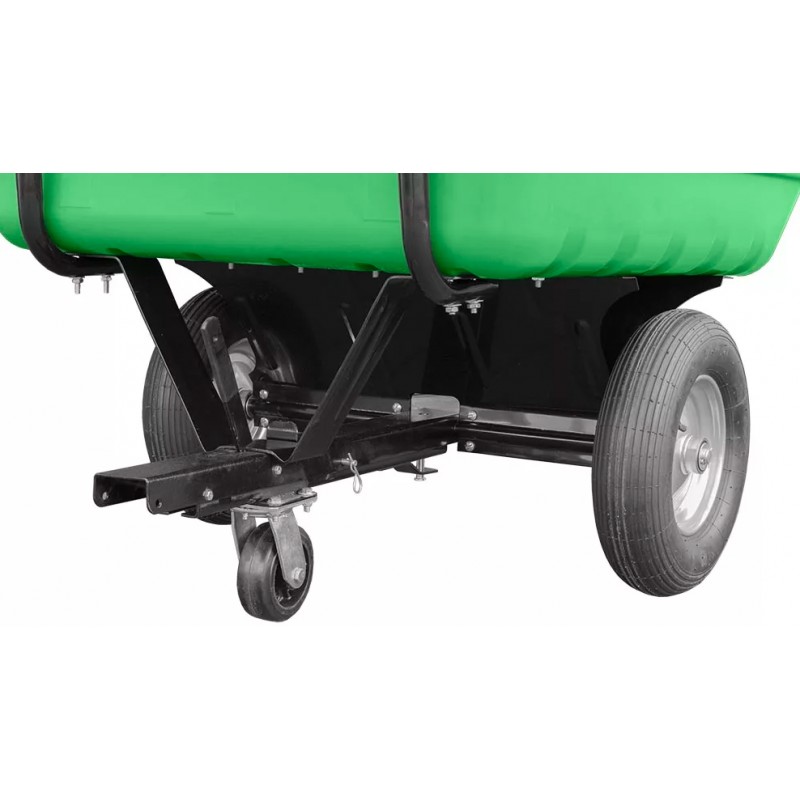 Dzięki imponującej ładowności do około 350 kg i pojemności około 500 litrów, umożliwia transport dużych ilości materiałów jednocześnie. Doskonale sprawdzi się do przewożenia trawy, liści, odpadów organicznych, przycinek, nawozów czy obornika, ułatwiając codzienną pracę w ogrodzie i na terenach zielonych.