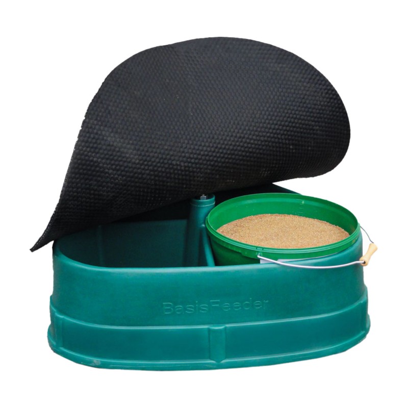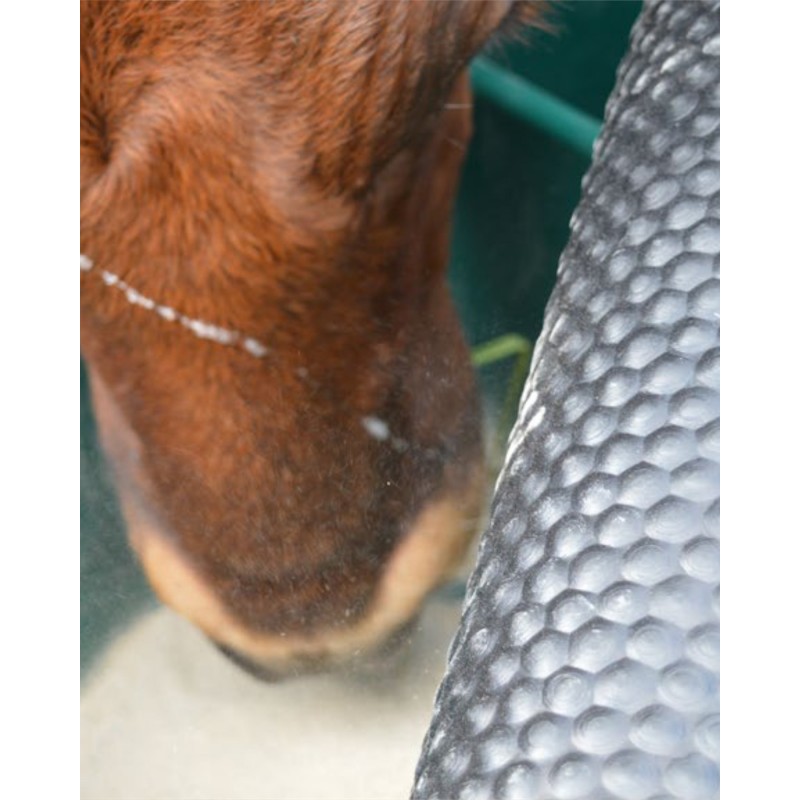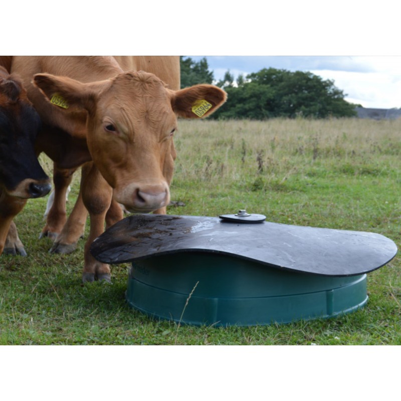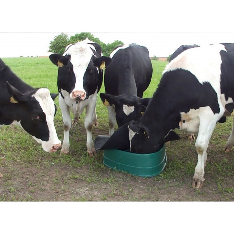 Podajnik paszy z gumową osłoną chroniącą zawartość przed warunkami atmosferycznymi i zabrudzeniem. Zwierzęta z łatwością podnoszą gumową osłonę. Wyposażony w trzy komory, które pozwalają na połączenie różnych minerałów. Nachylone ściany zewnętrzne oraz odpowiednia wysokość podajnika ograniczają ryzyko przewrócenia. Łatwy w transporcie i konserwacji.