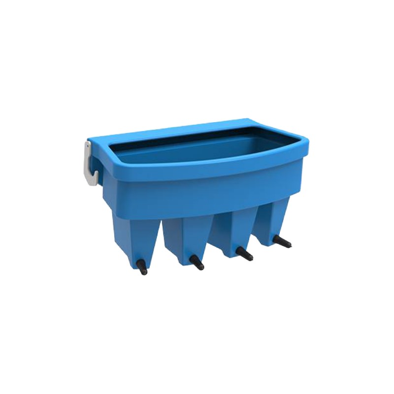 Karmidła czterosmoczkowe dla cieląt zapewniają skuteczny sposób dostarczania mleka cielęciu. Każdy podajnik jest wyposażony smoczkowy zawór zwrotny, aby dostarczać mleko grawitacyjnie. Smoczki są skonstruowane tak, aby pobudzić odruch ssania, zapewniając optymalną ilość mleka dla cieląt. Karmidło jest wyposażone w dwa mocne haki, dzięki którym możemy je umieścić w wielu miejscach gospodarstwa (brama, ogrodzenie). Idealne do użytkowania z domkiem dla cieląt (zawieszenie na wygrodzeniu).