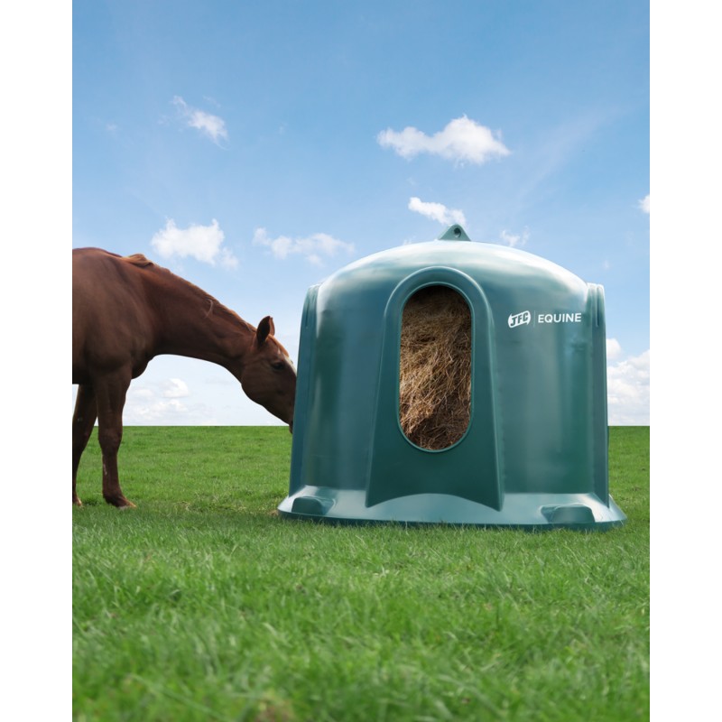 Zaprojektowany aby pomieścić standardową okrągłą belę siana. Paśnik chroni pożywienie przed wszystkimi warunkami atmosferycznymi i minimalizuje straty związane z deptaniem i zanieczyszczaniem pokarmu. Posiada 4 otwory, które umożliwiają karmienie. Wyprodukowane z wytrzymałego polietylenu, nie posiada metalowych części, co czyni go niezwykle bezpiecznym dla zwierząt. Łatwy w przemieszczeniu, umożliwia postawienie w dowolnym miejscu na padoku lub w terenie.